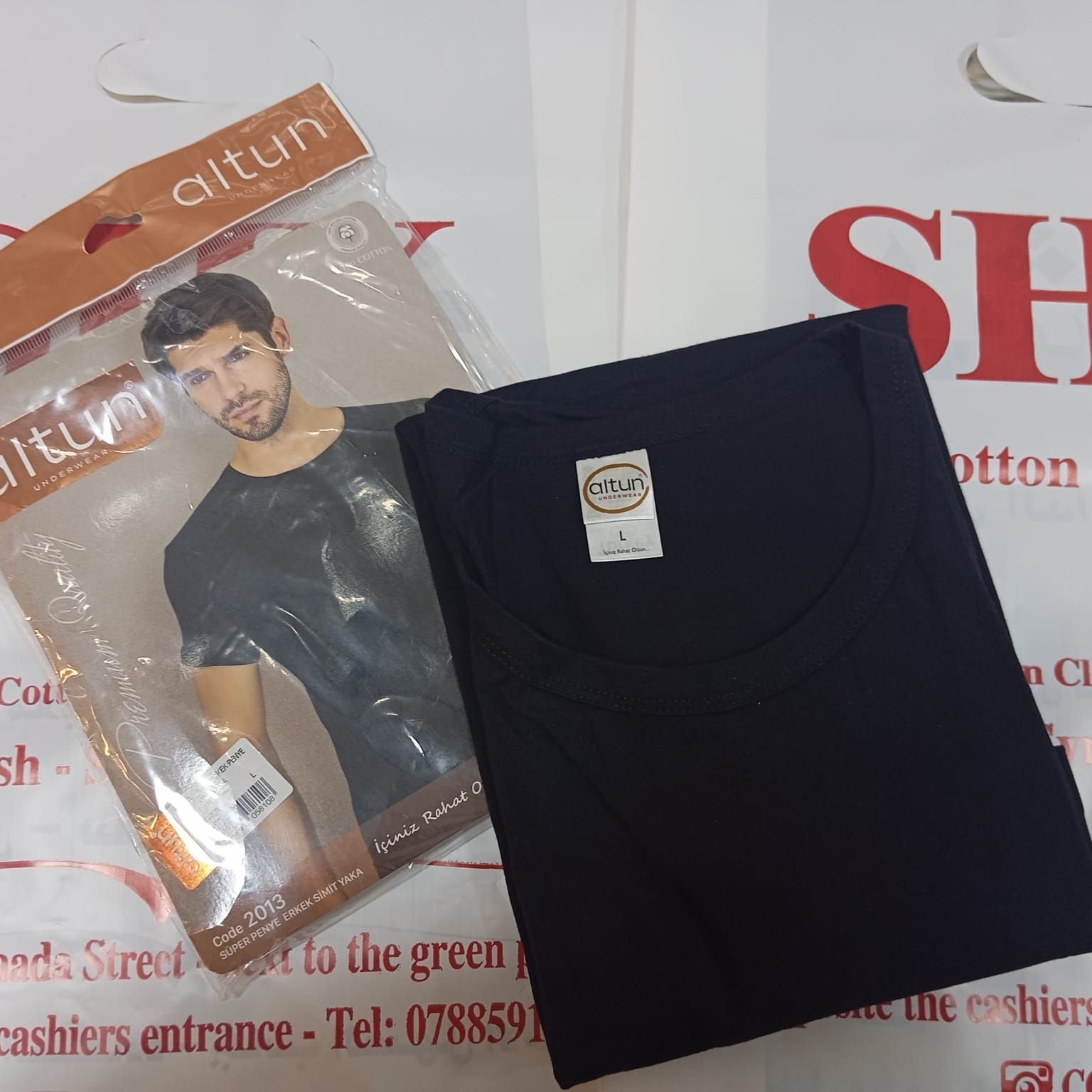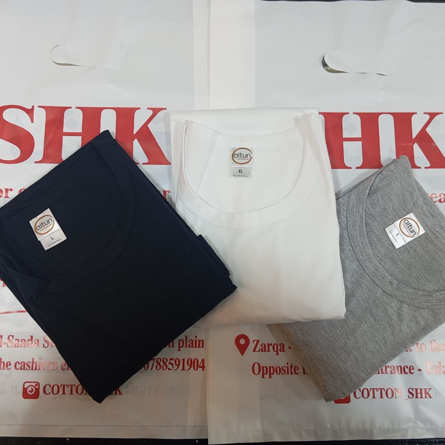 فانيلا نص كم قبة دائرية وسط يعني مش عالية خنق ولا كثير واسعة و نازلة جاي بنص قطن 100% تركي
